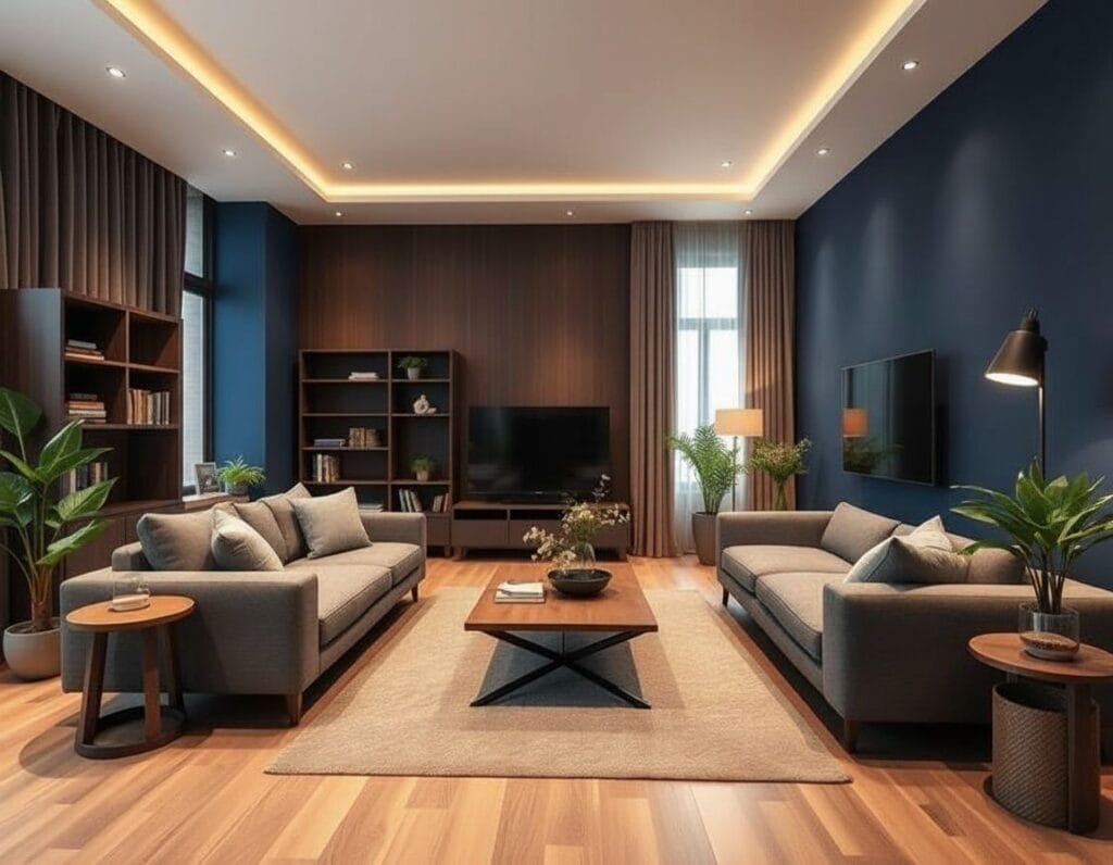 Jedna ściana w odważnym kolorze potrafi zmienić charakter całego pokoju. Głęboki granat dodaje elegancji, szałwiowa zieleń uspokaja, a ciepły terakotowy ożywia przestrzeń. Nie trzeba malować całego mieszkania — wystarczy jeden akcent.