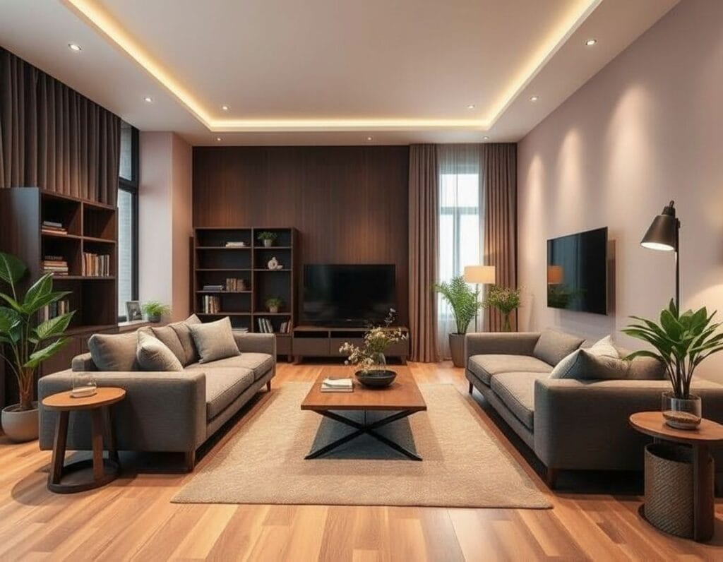 Zmiana oświetlenia to najszybszy sposób na transformację atmosfery. Ciepłe światło (2700-3000K) tworzy przytulny, relaksujący klimat — idealny do sypialni i salonu wieczorem. Zimne światło (4000-5000K) energetyzuje i poprawia koncentrację.